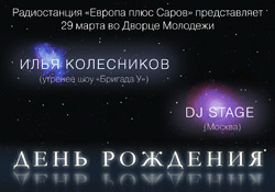 «Европа плюс Саров» зовет всех на свой День рождения! 29 марта в 22:00 встречает вас во Дворце Молодежи. В гости приезжает лучший шоумен Москвы, ведущий «Бригады У» — Илья Колесников. Вместе с ним будут зажигать dj Stage и резиденты проекта «Euromix». Читать далее »